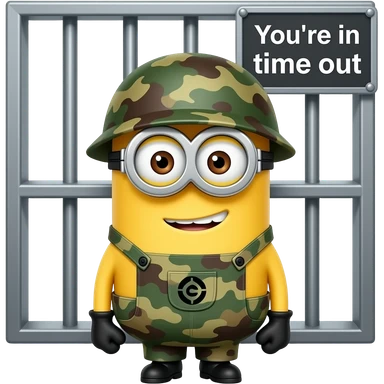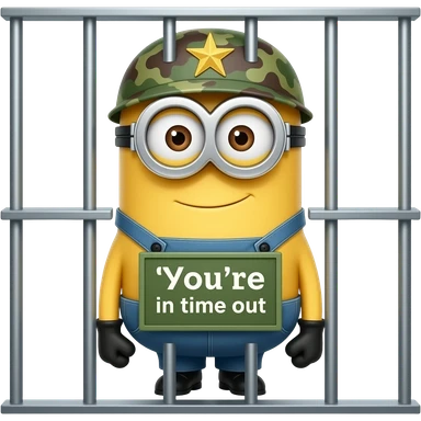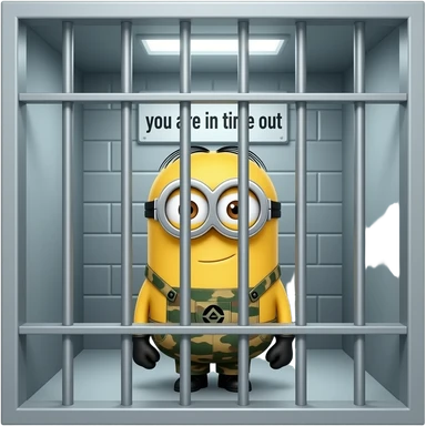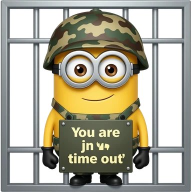 minion wearing army fatigues in jail text your in time out emoji