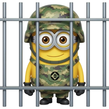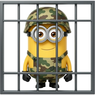 minion wearing army fatigues in jail emoji
