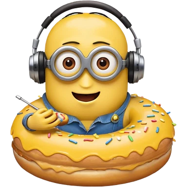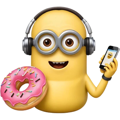 minion listening to music eating a donut emoji emoji | AI Emoji Generator