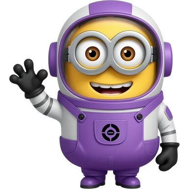 Minions de um astronauta meio roxo dando saudação para alguém emoji
