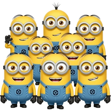 Minions com fones de ouvido, mostrando os dentes e sorrindo. emoji