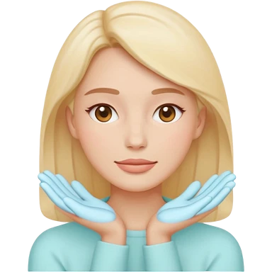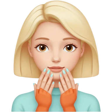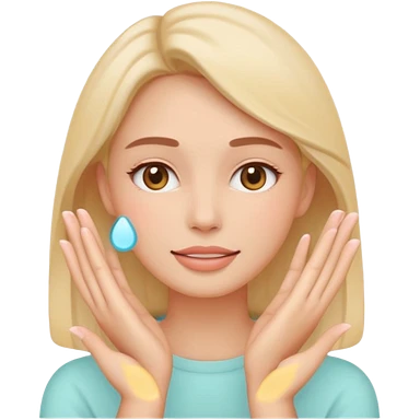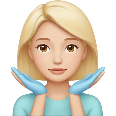 Minimal emoji-style icon of a woman’s face with clear glowing skin, hands gently touching the jawline, skincare concept, soft pastel colors, clean flat design, rounded shapes, no background, modern wellness emoji, iOS-style, high clarity emoji