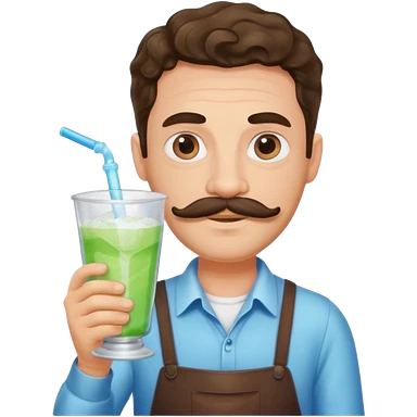 Good looking jewish man with mustache and wavy middle part hair holding a slushy in a yard glass emoji