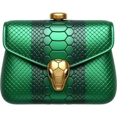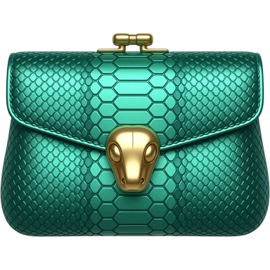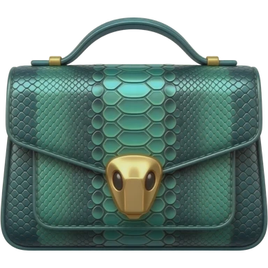 Realistic, mirco-detailed, leather Snake-embossed patterned bag in a deep emerald colorshifting to teal shade shimmery appearance, with realistic gold embellishments, isolated 3d rendering, 8k hd, no emoji icons no emoji faces emoji