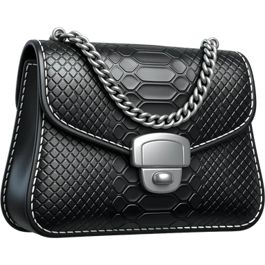 Realistic, mirco-detailed, black leather, Snake-embossed clutch bag, shiny silver chrome embellishments and silver stitching, isolated 3d rendering, 8k hd, no emoji icons no emoji faces emoji