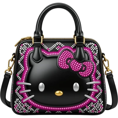 Ultra realistic Luxury dolce and Gabbana, hello kitty themed bag black, and neon pink with silver chrome mirco-detailed, 8k. Isolated, 3d rendering, no emoji icons, no emoji faces no human figures, 600 dpi emoji