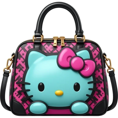 Ultra realistic Luxury dolce and Gabbana, hello kitty themed bag in colors black, hot pink, turquoise mirco-detailed, 8k. Isolated, 3d rendering, no emoji icons, no emoji faces no human figures, 600 dpi emoji