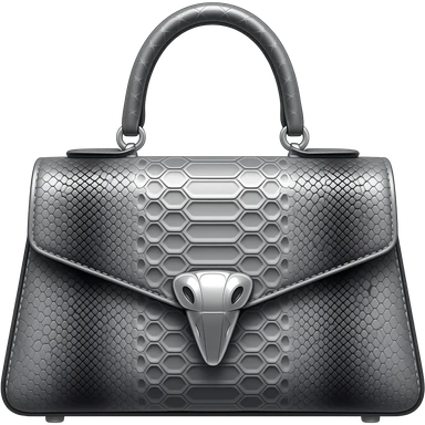 Realistic, mirco-detailed, grey and black color leather, Snake-embossed handbag, with hyperrealistic silver chrome embellishments, isolated 3d rendering, 8k hd, no emoji icons no emoji faces emoji