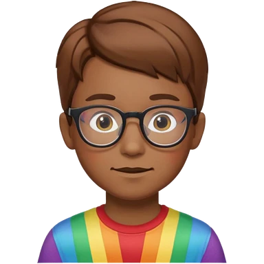 A nerd kid with glasses a brown side part and a rainbow shirt emoji