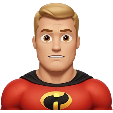 Mr incredible head without eye mask or suit but with haircut and straight face and the background along with him being ever so slightly deepfried and he got brain trauma that his head got flattened and his forehead his almost nonexistent emoji
