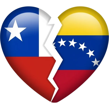 Corazón roto una mitad con la bandera de chile y la otra mitad con la bandera de venezuela emoji