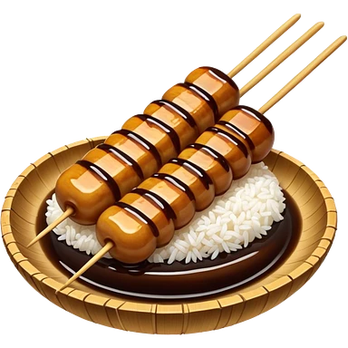 Mitarashi dango with shiny soy sauce glaze drizzled over white rice emoji