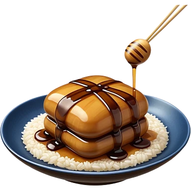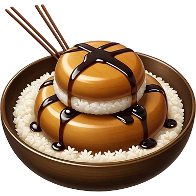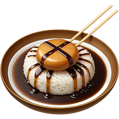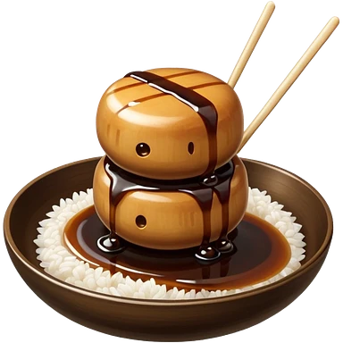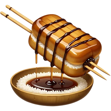 Mitarashi dango with shiny soy sauce glaze drizzled over white rice emoji | AI Emoji Generator