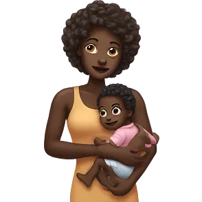 light skin woman standing with black hair holding a curly head mixed baby girl emoji