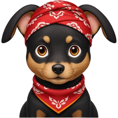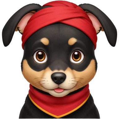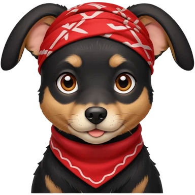 Shadow is a mixed-breed dog, a cross between a Belgian Malinois and a Border Collie. He has a sleek black coat, big upright ears, and bright, intelligent eyes. He wears a red bandana around his neck, which gives him a strong and distinctive look. emoji