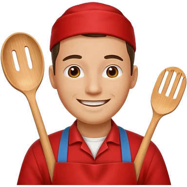 Mixed man wearing an apron holding a pizza emoji | AI Emoji Generator
