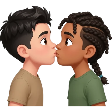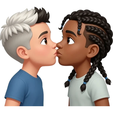 Tan white boy with black middle part hair kissing mixed boy with braids emoji