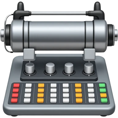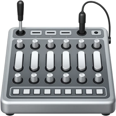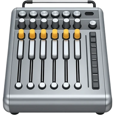 A longboard DJ mixer with faders, EQ knobs, and colorful LEDs. emoji