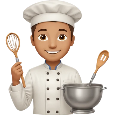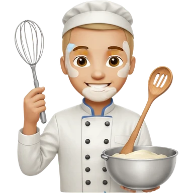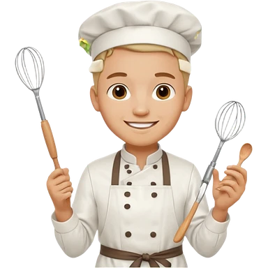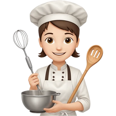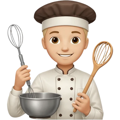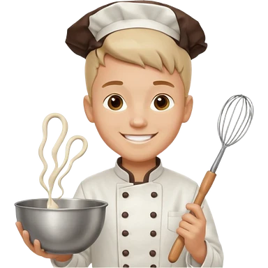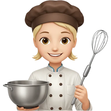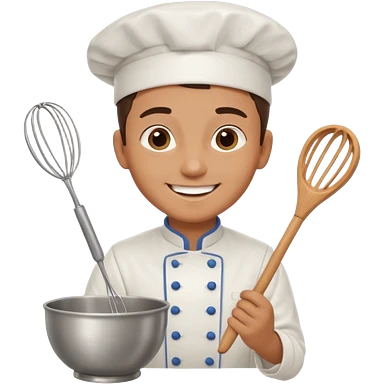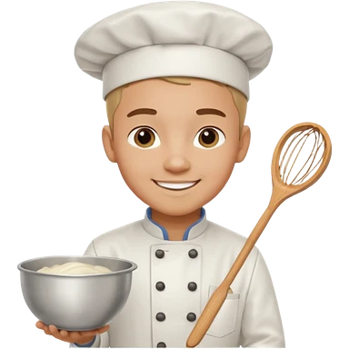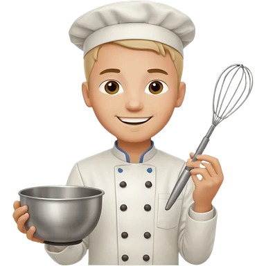 Young Pastry Chef – smiling, holding whisk and mixing bowl. emoji