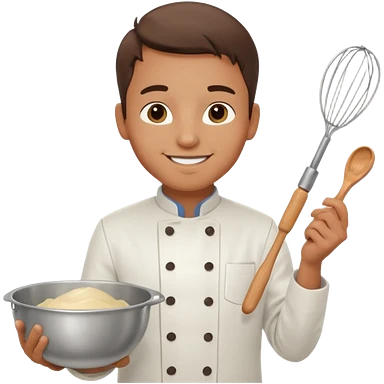 Male Young Pastry Chef – smiling, holding whisk and mixing bowl. emoji