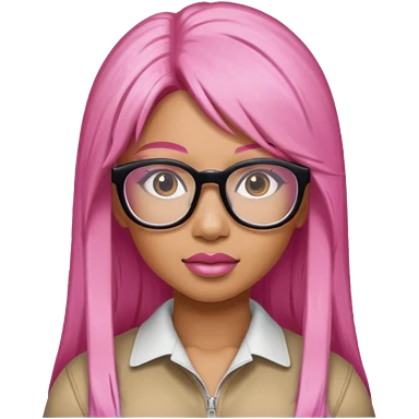Rapper Nicki Minaj pink hair wear glasses emoji