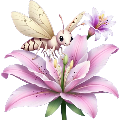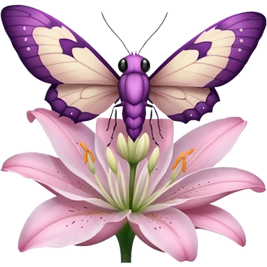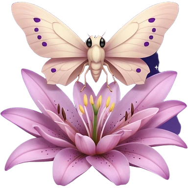 Композиция из моли и цветка — маленькая моль, сидящая на лепестке ночного цветка лилии. Цвета: пастельные, с акцентом на розовый и фиолетовый. Отражает гармонию с природой. ( кьютимарка для пони MLP ) emoji