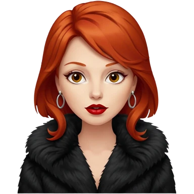Beautiful Woman Realistic long hair brunette Mob wife big brown fox fur coat emoji