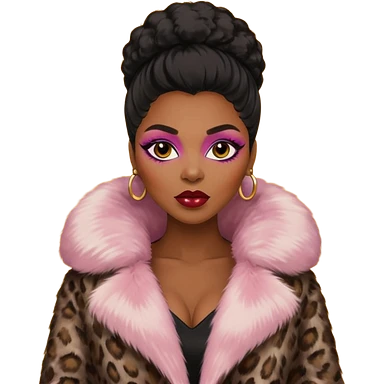Beautiful realistic brunette hair mob wife with leopard coat emoji