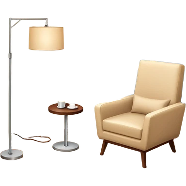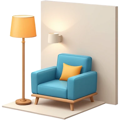 isometric corner of hotel room with floor lamp and modern armchair emoji