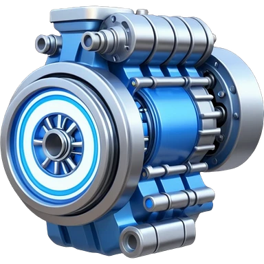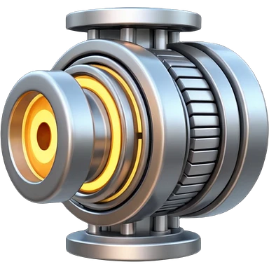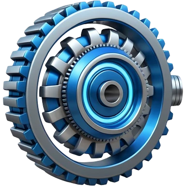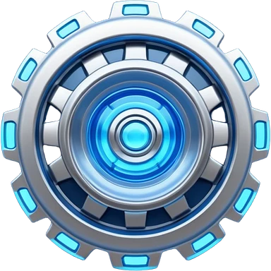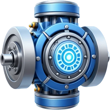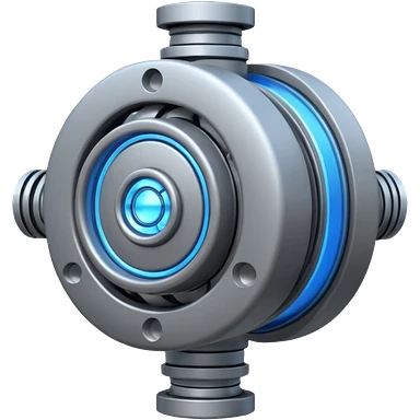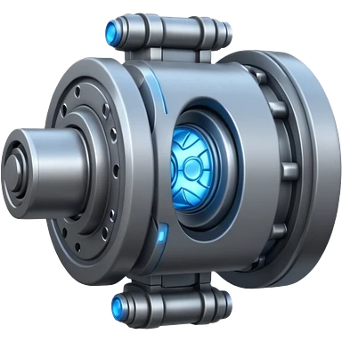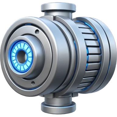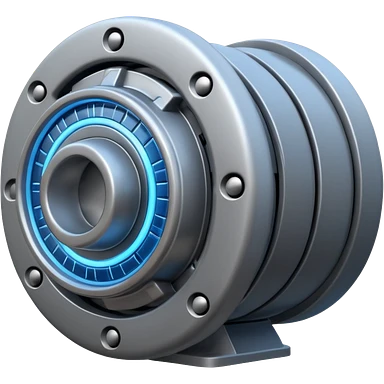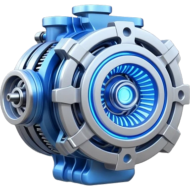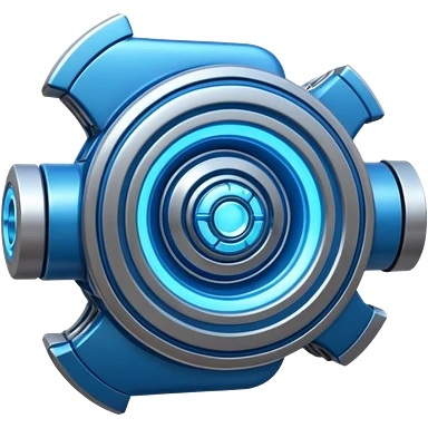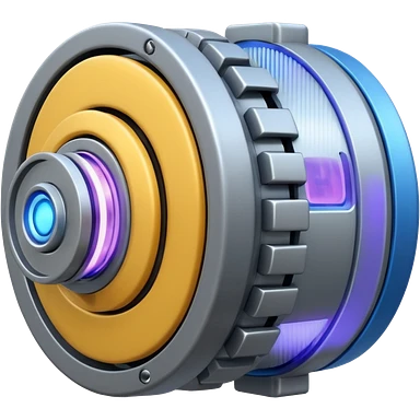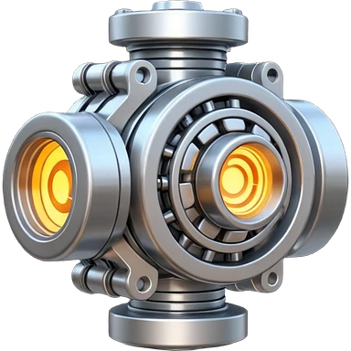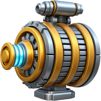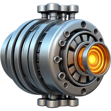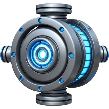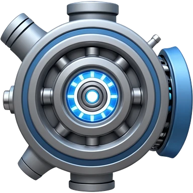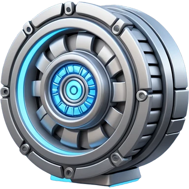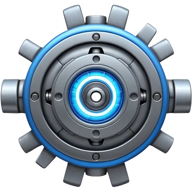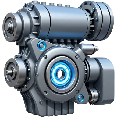 Dynamic high-mass futuristic engine emoji with thick metal housing, rotating components, glowing core, modern tech design. emoji