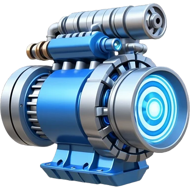 Powerful half-futuristic half-modern engine emoji, thick industrial metal body, rotating inner parts, glowing energy core. emoji