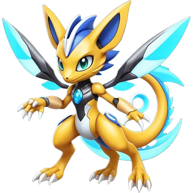 Modern Futuristic Cyber-Meloetta-Greymon-Inteleon-Renamon-Pokémon-Digimon-Fakémon-fusion-hybrid-creature emoji