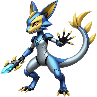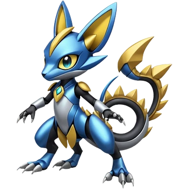 Modern Futuristic Cyber-Meloetta-Greymon-Inteleon-Greninja-Pokémon-Digimon-Fakémon-fusion-hybrid-creature emoji