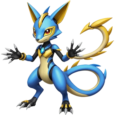 Modern Futuristic Cyber-Greymon-Greninja-Zeraora-Pokémon-Digimon-Fakémon-fusion-hybrid-creature emoji