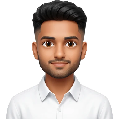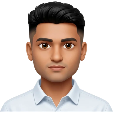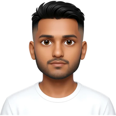 A young Indian man with a clean haircut and squared face emoji
