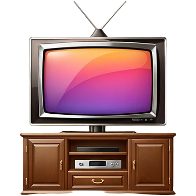 modern tv with news channel on it standing on a super luxurious wooden cupboard emoji