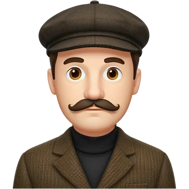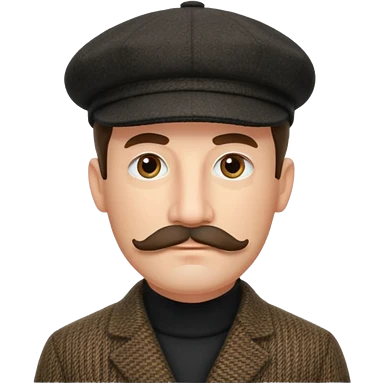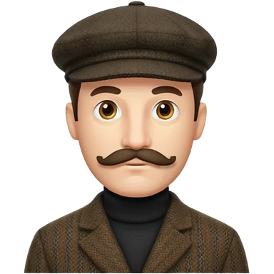 Big mustache sideburns sport coat black turtleneck tweed flat cap squinty eyes emoji