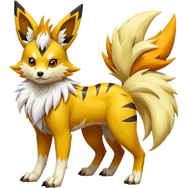 Feral Raikou-Jolteon-Renamon-Zeraora-Vernid-fusion-hybrid-creature, full body emoji