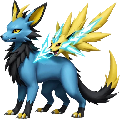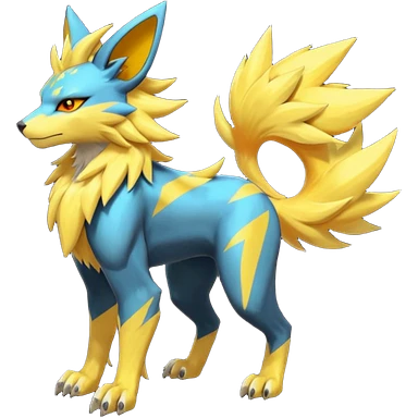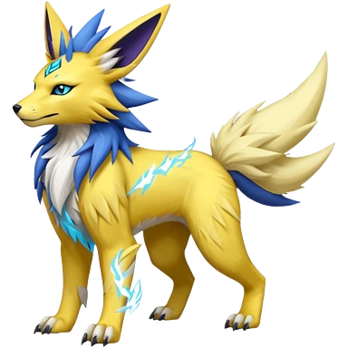 Feral Raikou-Jolteon-Renamon-Zeraora-Vernid-fusion-hybrid-creature, full body emoji