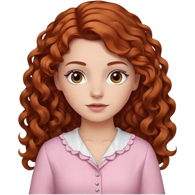 garota branca de cabelos longos cacheado partido ao meio castanho avermelhada com olhos castanhos e blusa rosa bebê emoji