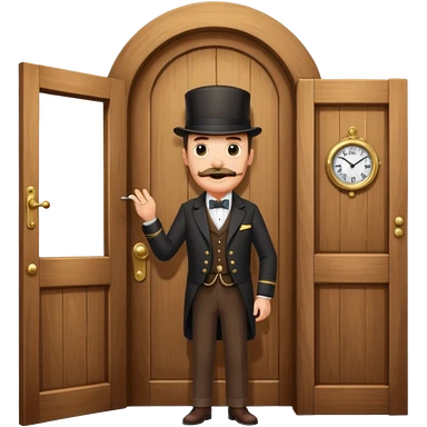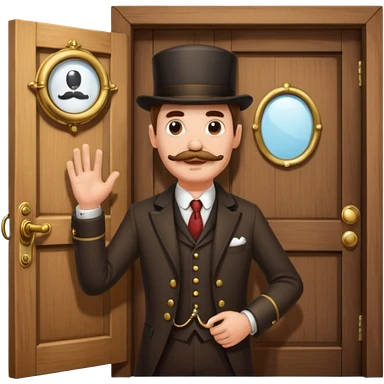 emoji of a gentleman with moustache and monocle standing nearby door welcoming you emoji