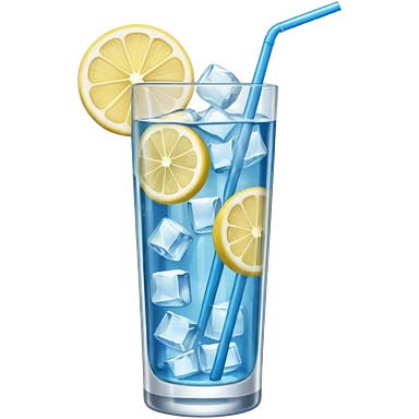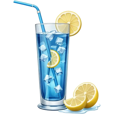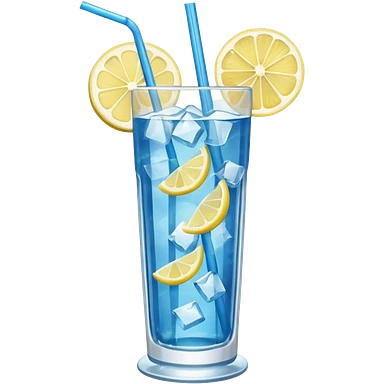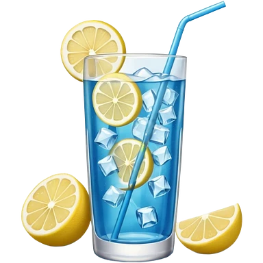 A tall glass of blue lagoon with lemon slices, ice cubes, and a curved straw. emoji