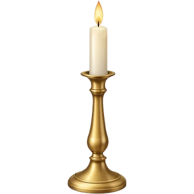 A tall brass candlestick with a thin white candle and soft flame. emoji