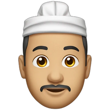 detailed iPhone-style emoji of a Saudi man resembling Crown Prince Mohammed bin Salman, soft round cartoon face, short beard, gentle brown eyes, calm confident smile, wearing traditional white thobe, red-and-white shemagh with black agal, both hands gently visible emoji