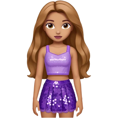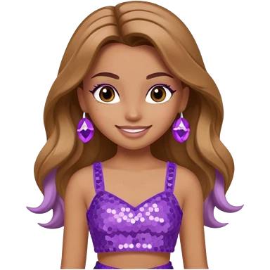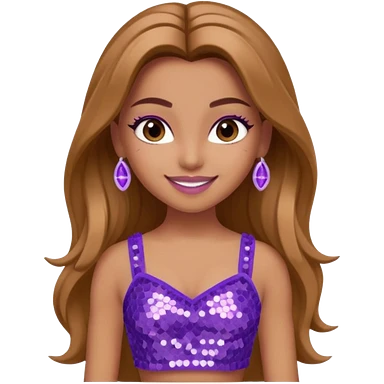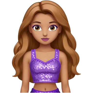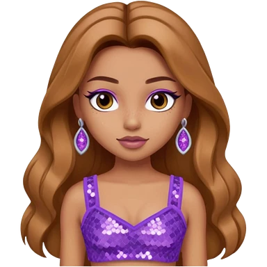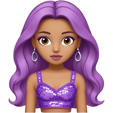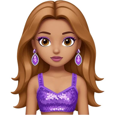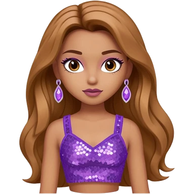 Yasmin from Bratz with long light brown hair, tan skin, brown eyes, lilac sequin crop top emoji