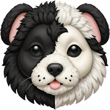 black and white cockapoo - give him a white chest, black ears and black fur covering his eyes, but then a white snout and an upside down white triangle-shaped patch of fur on his forehead emoji
