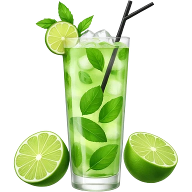 Mojito – tall glass with lime, mint leaves, and ice emoji