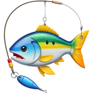 curve fishing rod with fish emoji