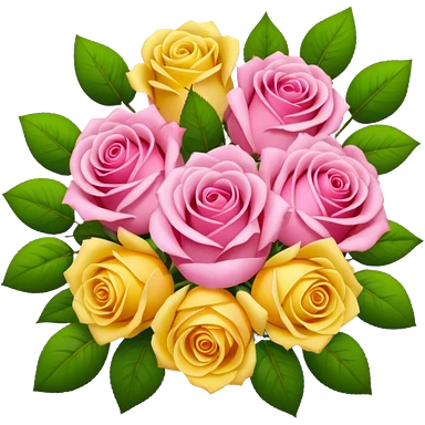 A bouquet of flowers, composed of pink roses and yellow roses. emoji