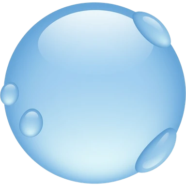 showing small blue water droplets floating gently in the air above a shiny surface, creating a fresh and slightly wet appearance — the surface has a soft reflective glow, representing humidity or moisture — clean, soft lighting and smooth rounded emoji design emoji